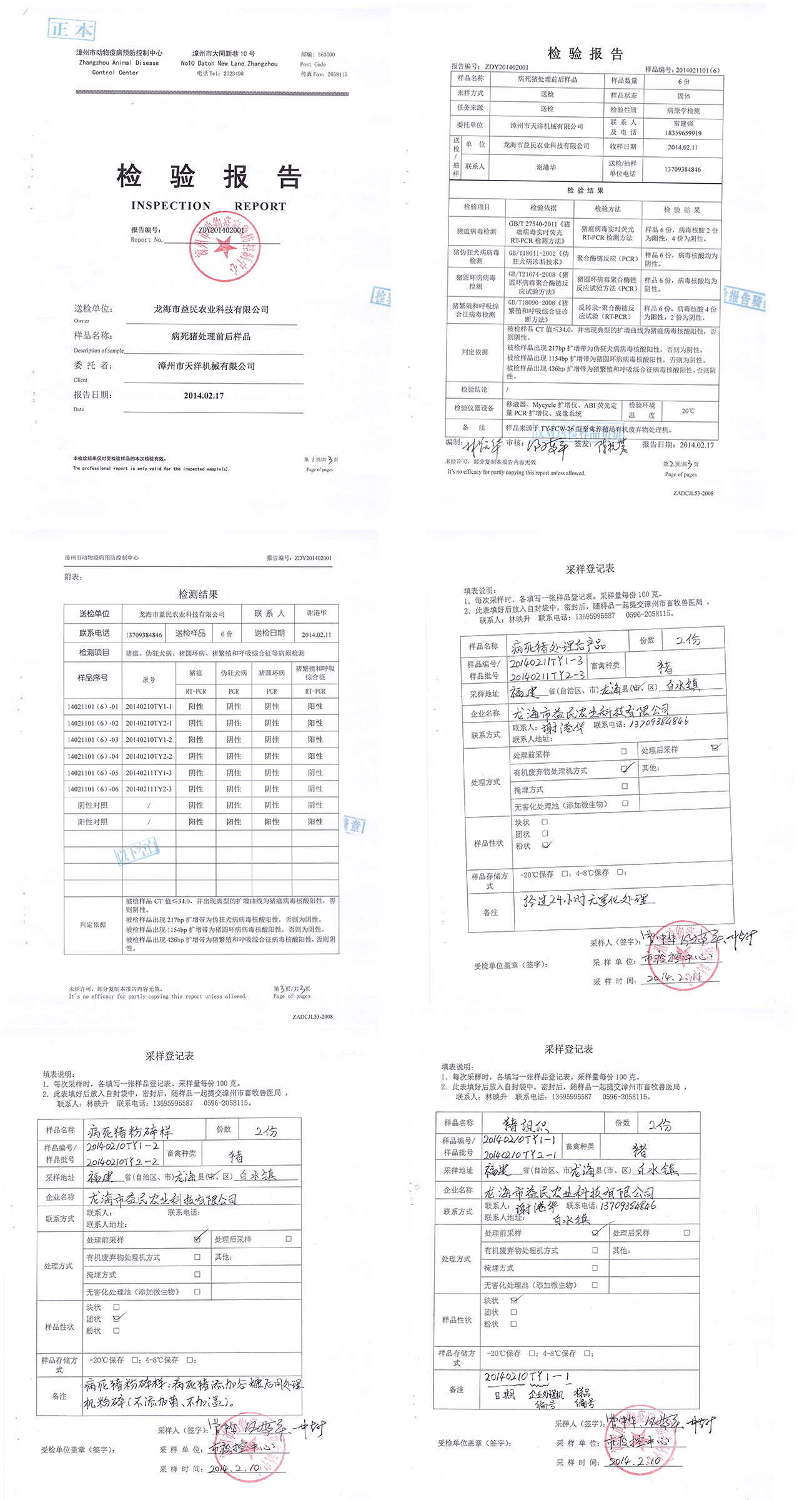 漳州市動物疫病預(yù)防控制中心檢驗報告--病死豬處理前后樣品
