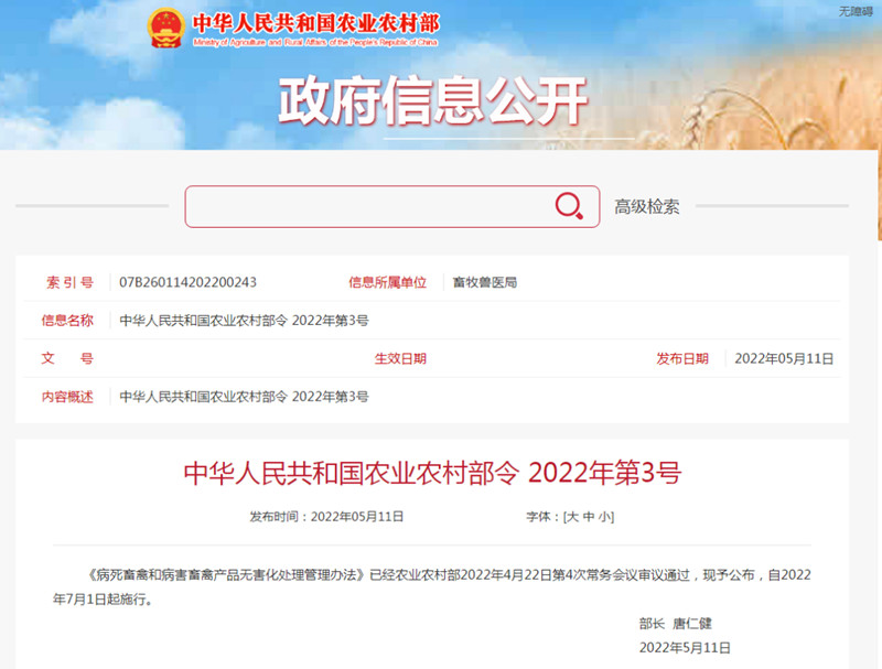 為了加快完善相關(guān)工作機(jī)制,近日,農(nóng)業(yè)農(nóng)村部發(fā)布《病死畜禽和病害畜禽產(chǎn)品無害化處理管理辦法》。